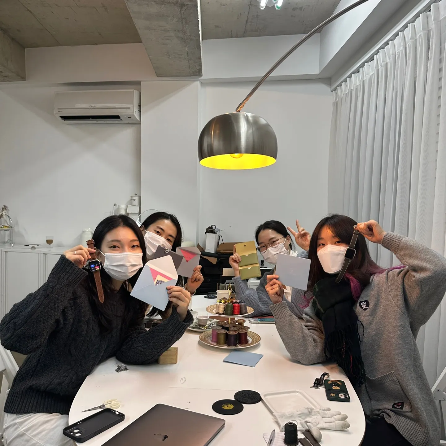‘연차소진해야하는데’의 마지막 모임에서는 다들 원했던 가죽 원데이 클래스 수강을 하고 저녁 식사를 했어요. 최근 근황과 클래스 후기, 후속 모임 전체 소감을 나누는 시간을 가졌습니다!