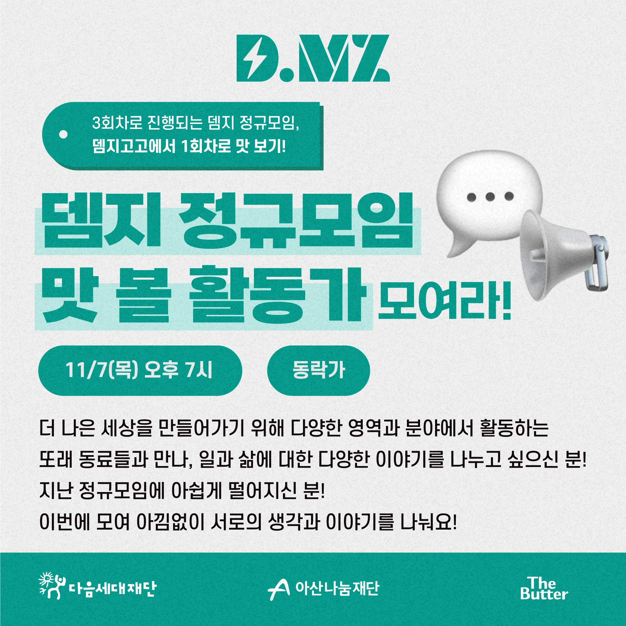 *D.MZㄱㄱ?는 아산나눔재단의 후원으로 진행되며, 미디어파트너 더버터와 함께합니다.