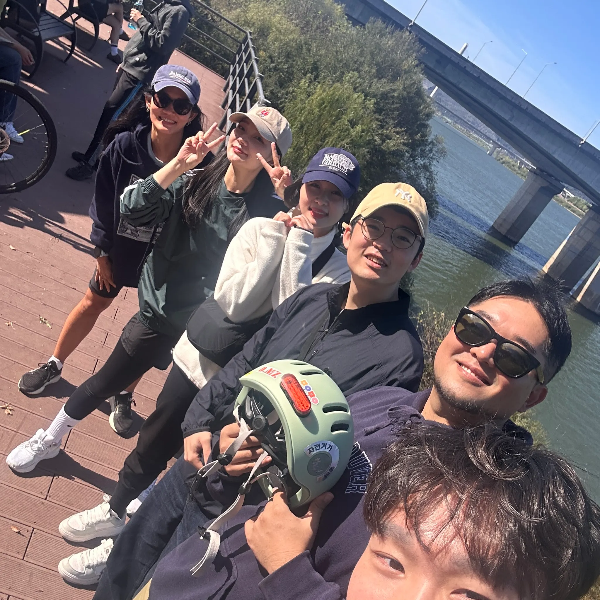 미사동에 도착 후 근처 식당에서 식사를 하며 서로의 관심사와 경험을 공유하는 시간을 가졌습니다! 다시 힘을 내서 자전거를 타고 광나루 한강 공원으로 돌아왔는데요, 도착 후 꿀맛같은 커피와 다과를 나눠먹으며 소감을 공유하고 마무리했습니다.