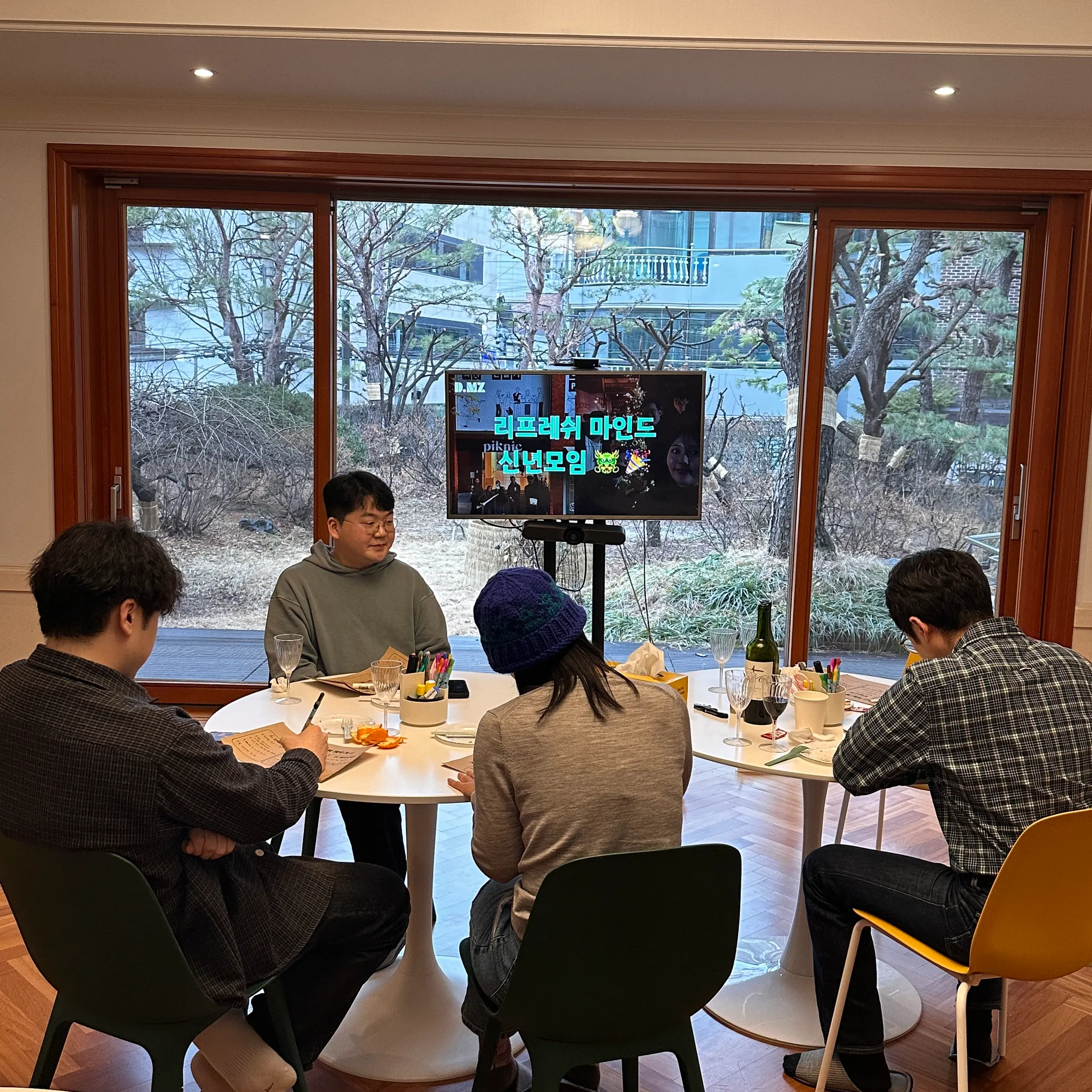 12월이다 보니 23년 회고와 남은 한달 목표를 같이 나누어봤어요. 목표를 직접 말하고보니 정말 더 하고싶어졌네요. 모두 다음달 모임에 꼭 목표를 이룬 채로 만날 수 있으면 좋겠어요. 서로 진심으로 응원하며 즐겁게 새해를 맞이하면 좋겠습니다~!