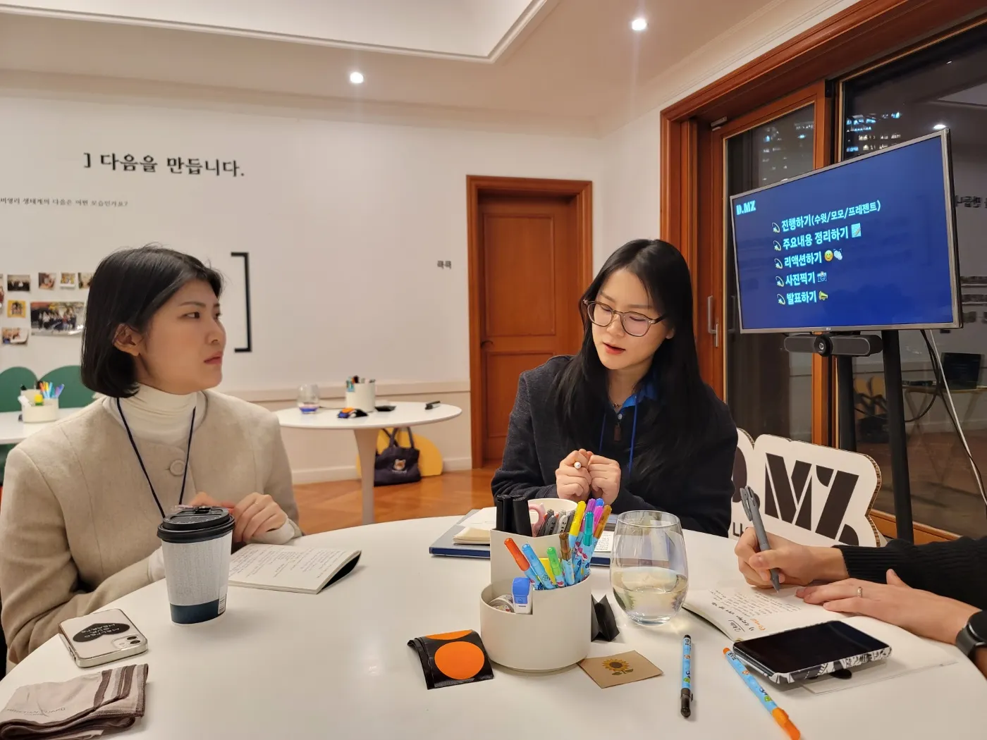 먼저 한 주 동안의 근황을 나누는 시간을 가졌습니다. 월급날 하루 전이라 조금 힘들게 느껴졌던 하루에 대해 나누기도 하고, 요즘 읽고 있는 책을 추천해주시는 참가자도 있었고, 야근과 주말출근을 한 얘기를 나누며 서로 위로하며 오늘을 시작하기 전 다시 힘을 얻는 시간이었습니다!