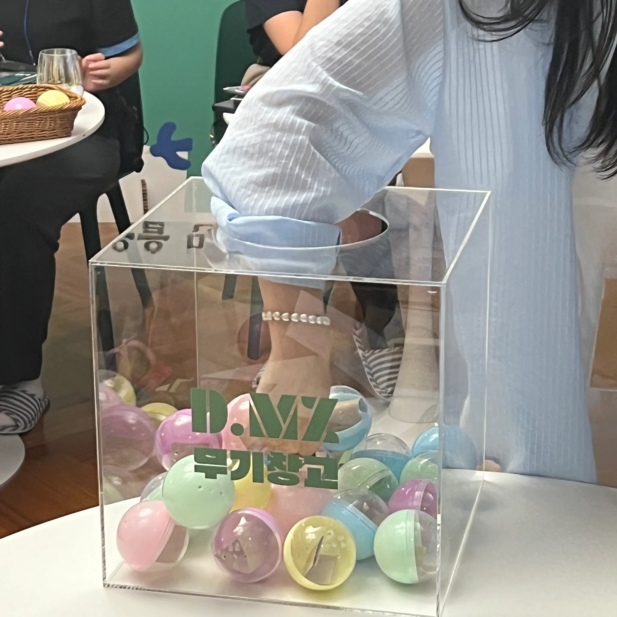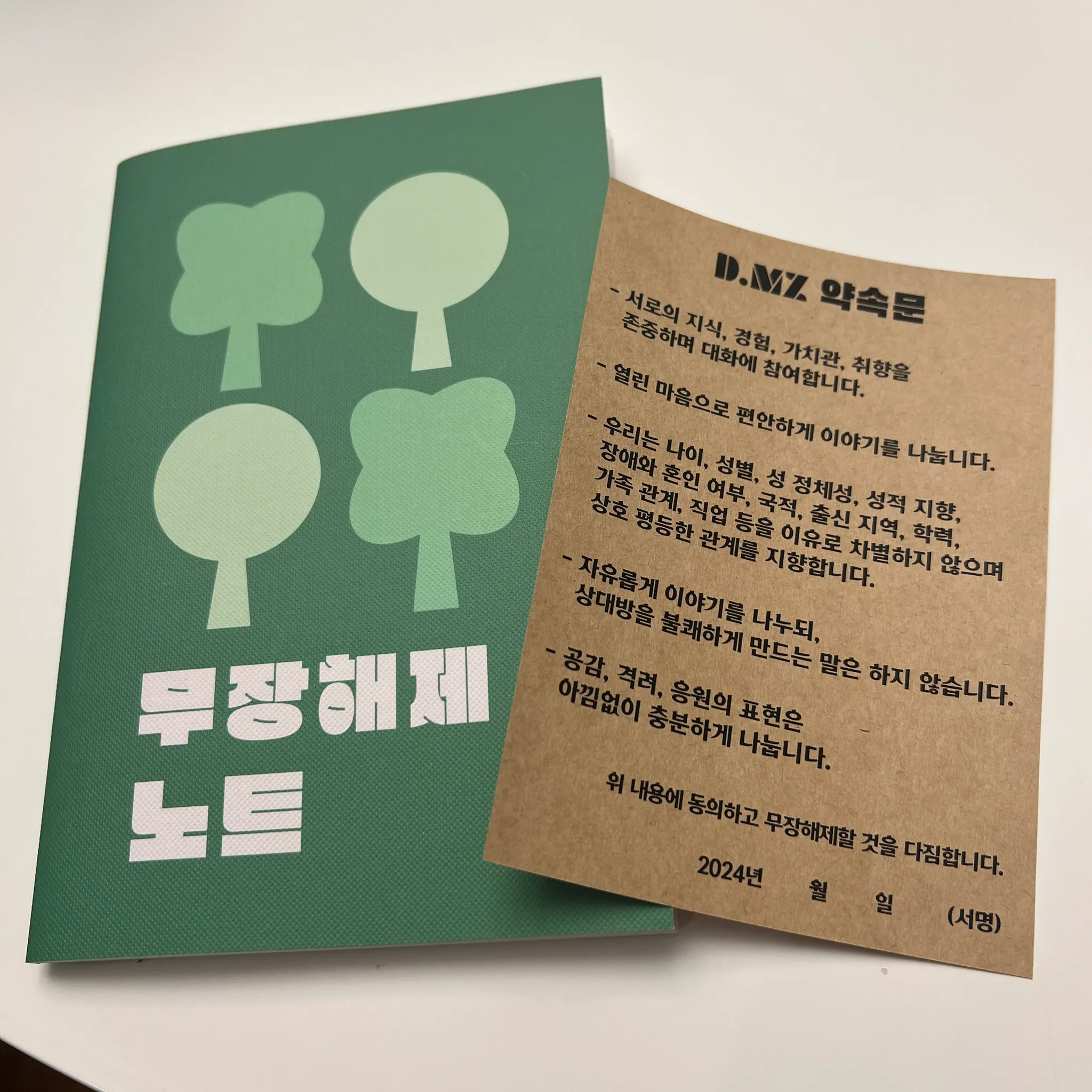 그리고 본격적으로 뎀지를 시작하기 전, 편안하고 안전한 대화를 위해 D.MZ 약속문을 함께 읽고, 완벽 무장해제를 위해 무기창고에 무기를 보관하는 시간을 가졌어요! 뎀지에서 일컫는 무기는 바로 ‘뎀지에서의 몰입을 방해하는 요소들’ 이랍니다!