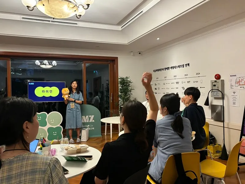 이외에도 본인의 업무와 관련된 퀴즈쇼를 귀여운 굿즈와 함께 준비해오신 참가자, [ㅎㅇㅈ] 자음 3개로 다양한 이야기를 준비해오신 참가자 등 재밌는 발표를 접할 수 있었어요. 참가자들의 다양한 매력을 느끼고 서로를 더 잘 알 수 있었던 1분 발표 시간이었답니다!