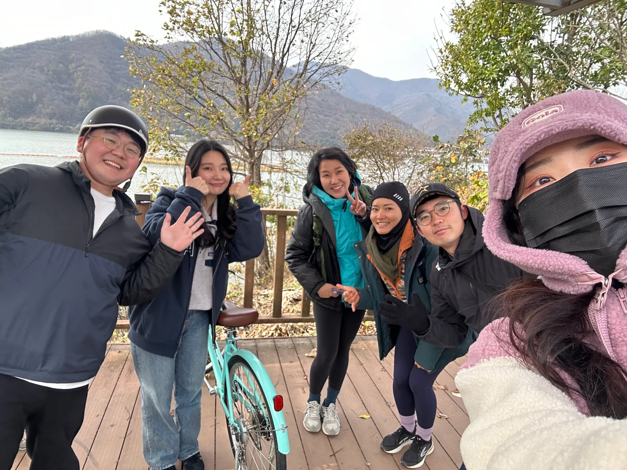 가을에서 겨울로 넘어가는 길목에서, 자연을 즐기기 위한 자전거 모험을 즐겼습니다. 일상적으로 자전거를 타는 사람, 자전거를 타 본 지 오래된 사람 모두 새로운 장소에서 해방감을 느낄 수 있었어요. 업무 얘기를 하는 것만이 아니라 즐거운 경험을 함께 한다는 것에서도 연대감이 생기더라구요.