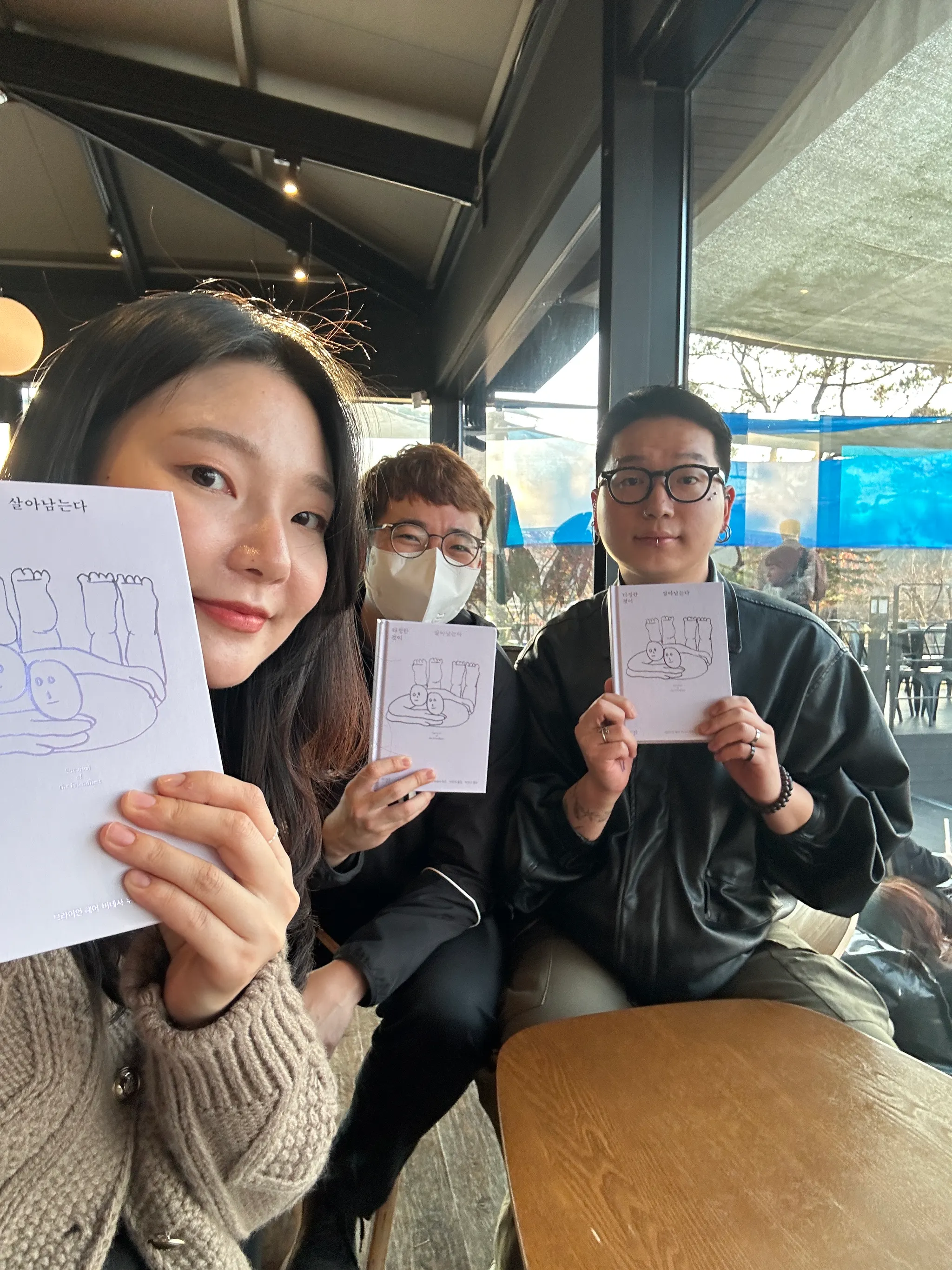 첫 모임을 가을에 시작하였는데 어느덧 계절이 바뀌어 겨울이 되고 마지막 모임을 맞이하게 되었습니다. 마지막 모임은 12월 17일 뚝섬역에 있는 한 카페에서 진행이 됐는데요, 아주 추웠던 날이지만 4명의 참가자 모두 참석하여 책에 대한 다양한 생각, 자신의 경험 등등 다양한 대화를 나누었습니다.
