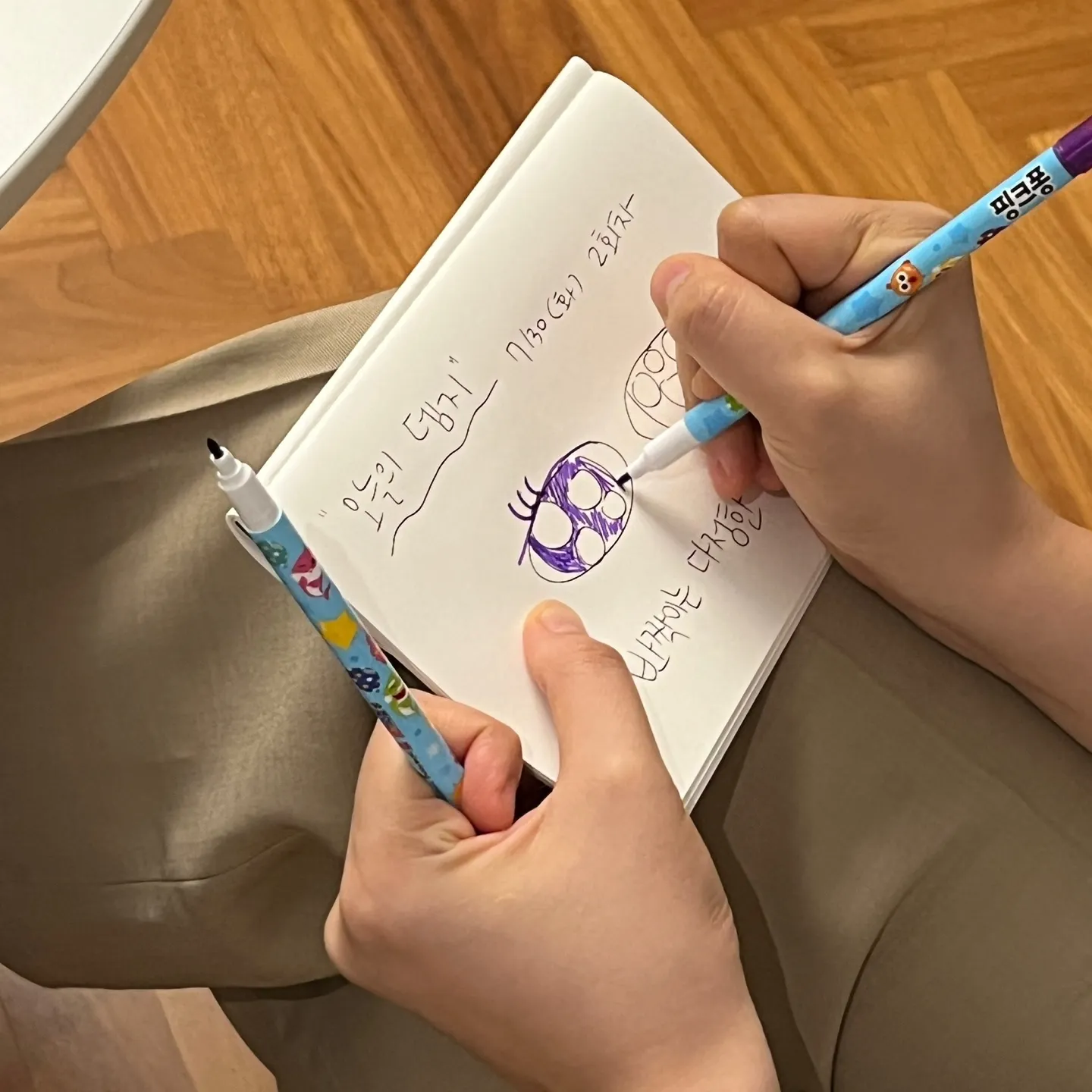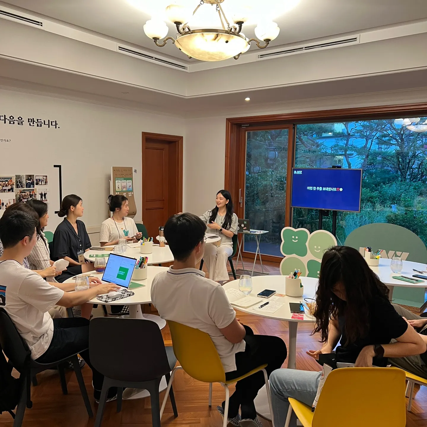 “오늘의 뎀지, ‘반짝이는 다정한 눈망울’이었다. 다들 열심히 경청하는 모습에서 반짝거리고 다정한 눈망울이 느껴졌어요.”