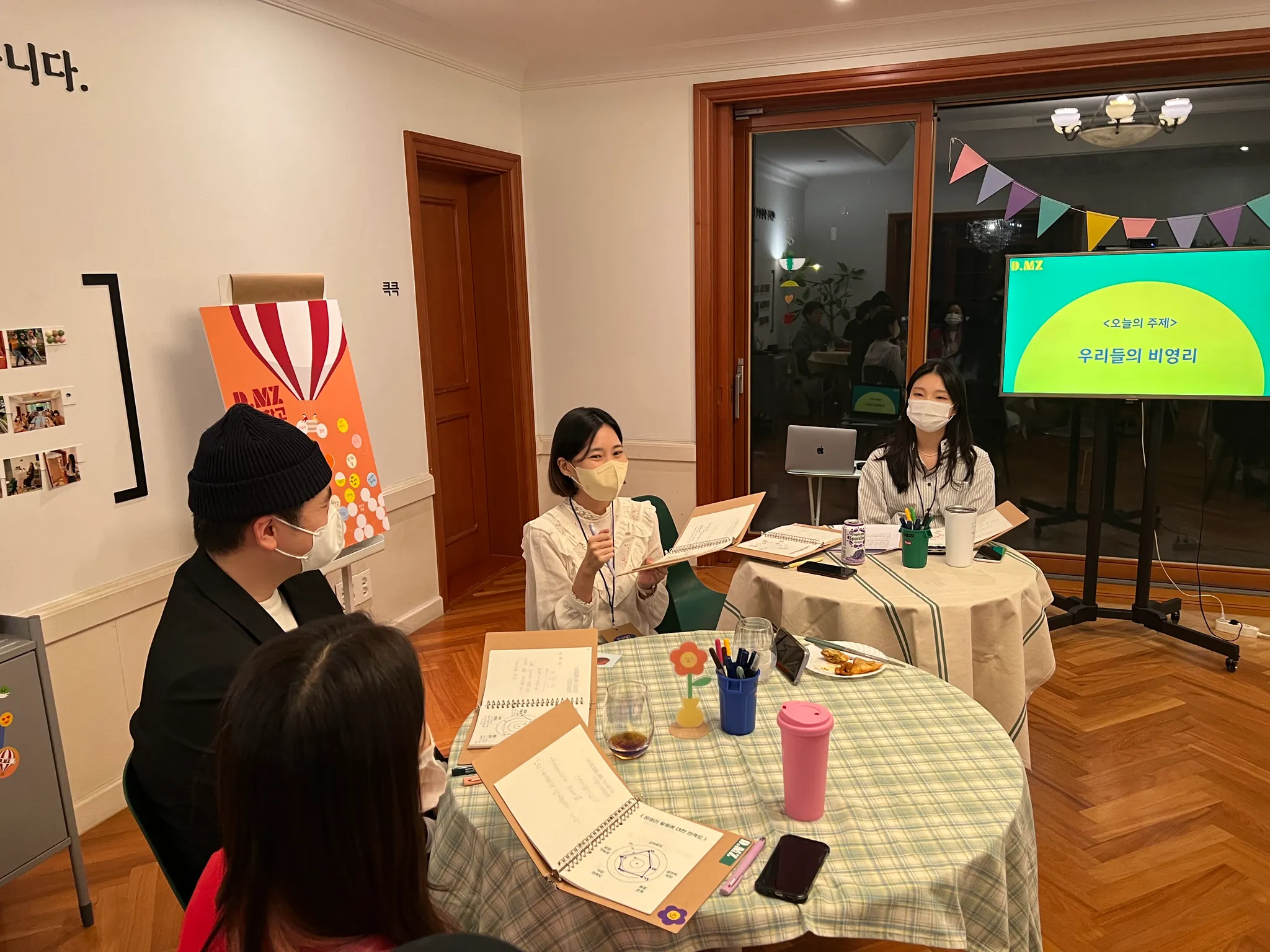 이렇게 가을밤의 D.MZ에서는 <비영리>를 보다 깊게 들여다보며 우리가 비영리에서 활동을 하고 있는 이유와 앞으로의 비영리에 있어 중요하다고 생각하는 지점들에 대해 이야기 나눠보는 시간을 가졌습니다. 다들 서로의 한 마디 한 마디에 격하게 고개를 끄덕이며 많은 공감을 나눌 수 있었어요.