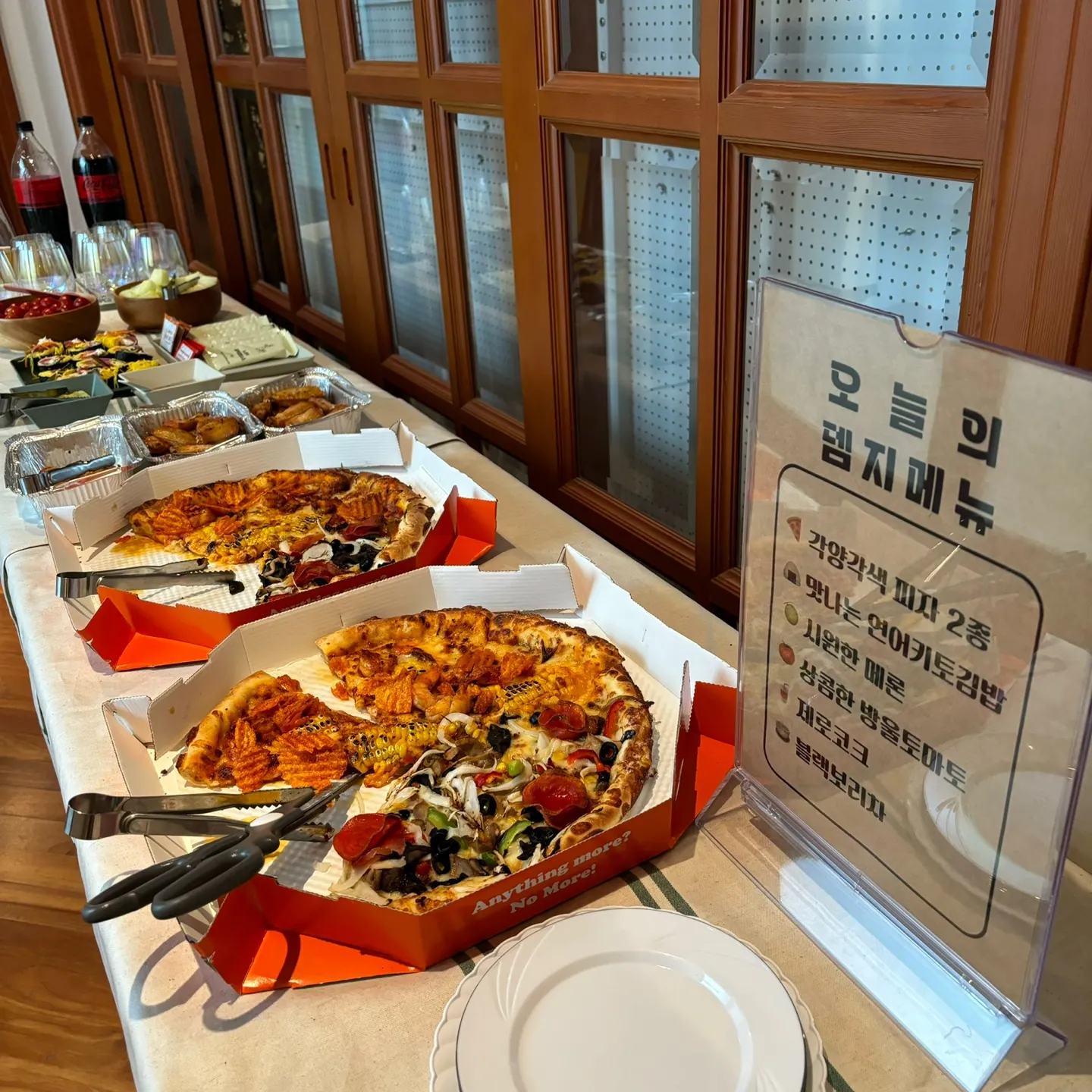 피자부터 비건메뉴, 과일까지! 첫만남에도 어색함 없이 함께 식사를 즐기며 이야기 나누는 모습이 인상 깊었어요.